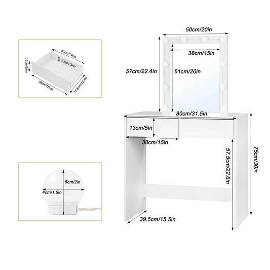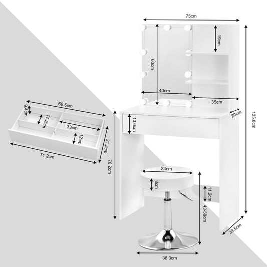 Luna Make-up Table with Chair & LED Mirror